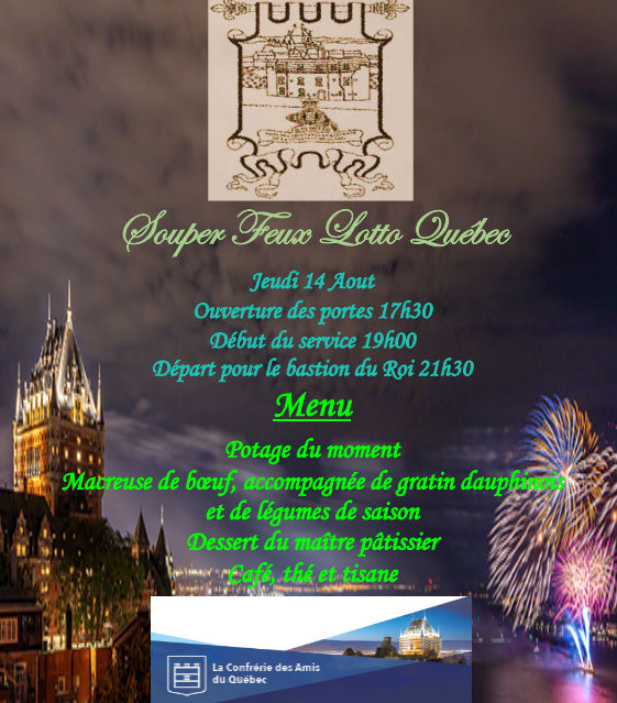 Note : La priorité sera donnée aux confrères (et conjointes) jusqu'au 10 août. Si vous voulez inscrire des invités, inscrivez-les maintenant. Par contre, leur inscriptions peuvent être annulées si la capacité est atteinte par des confrères avant cette date.